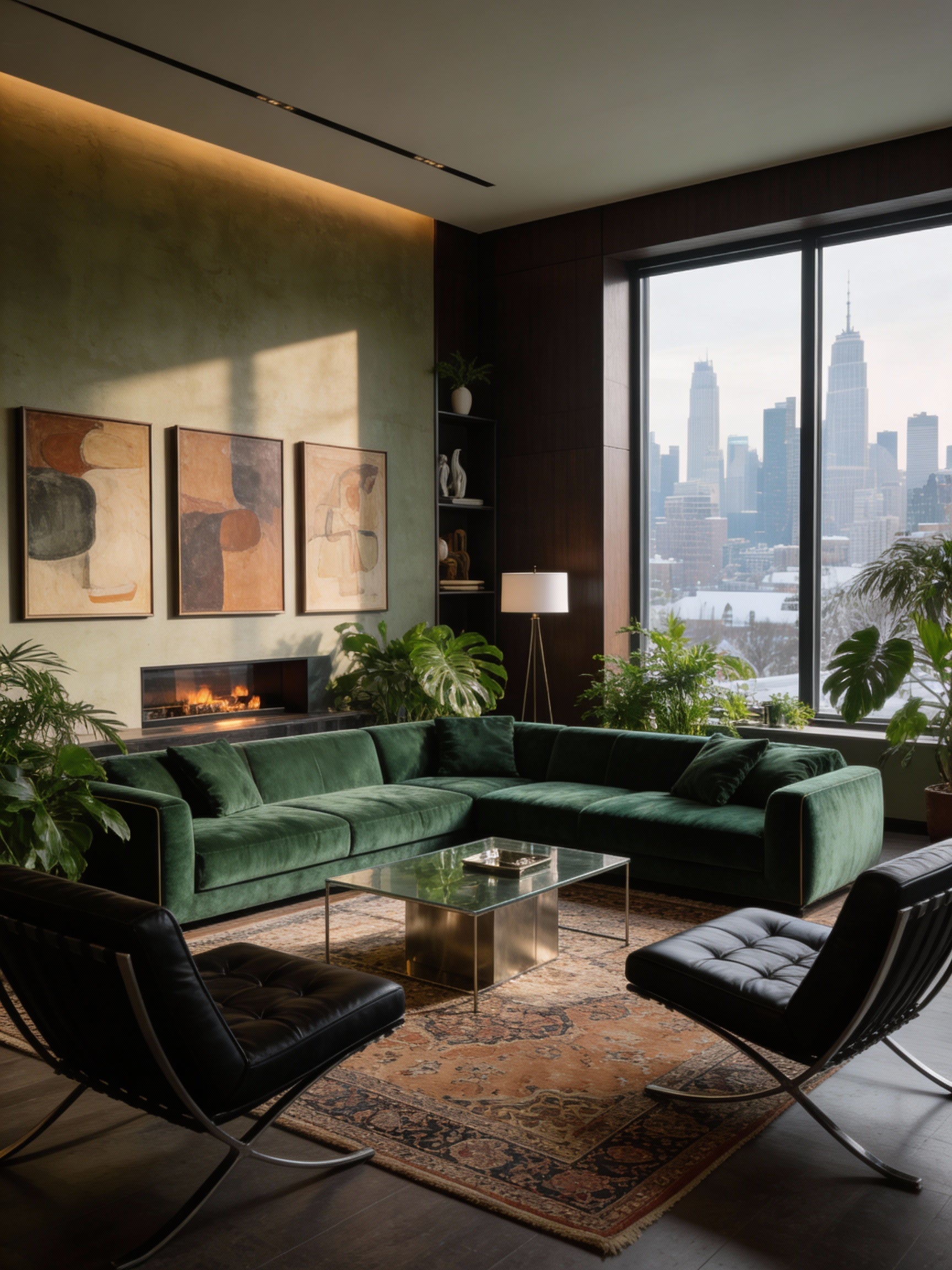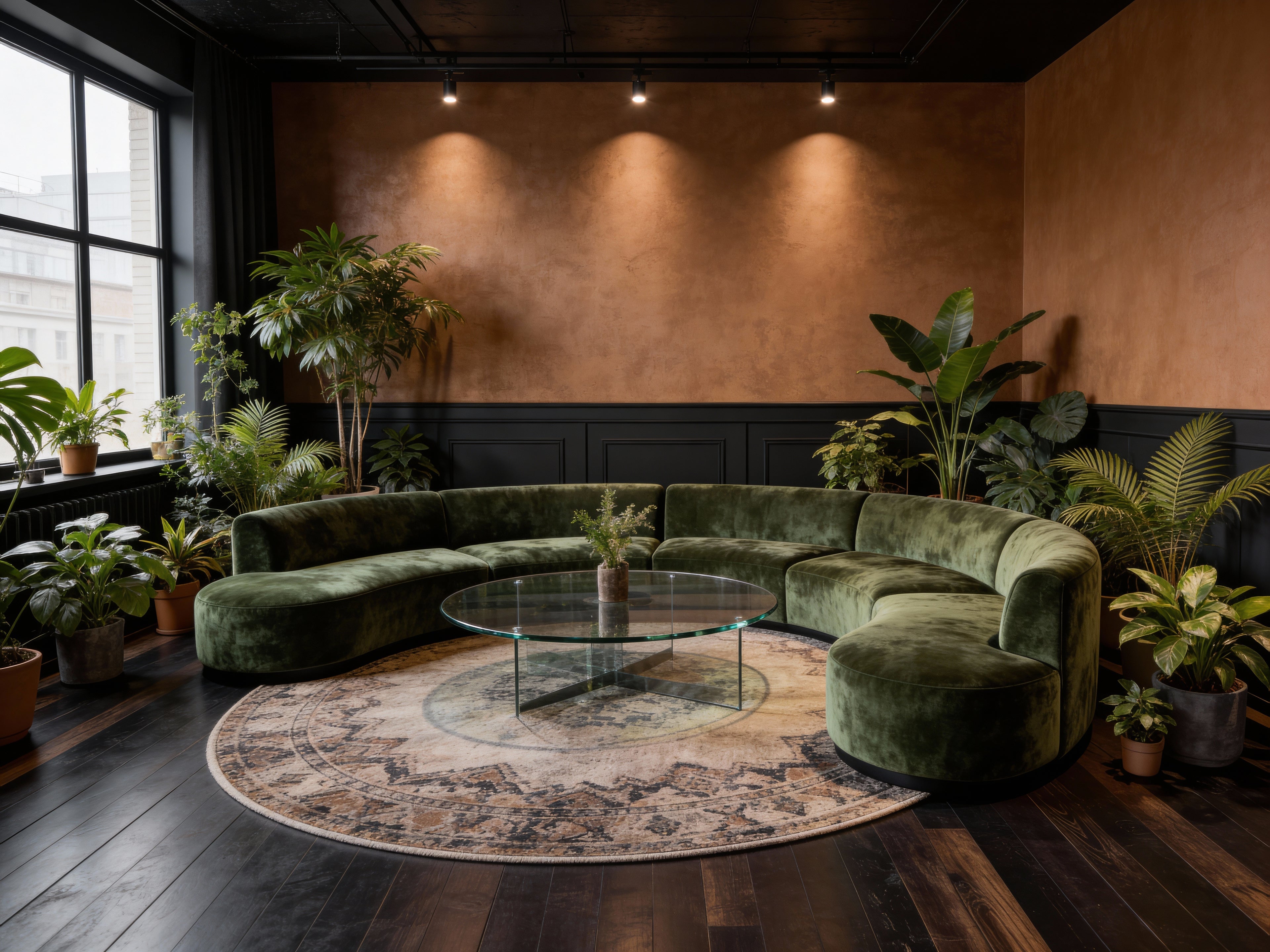Urban Botanical Harmony brings together structured interiors and lifelike greenery, creating a balanced dialogue between modern living and botanical design